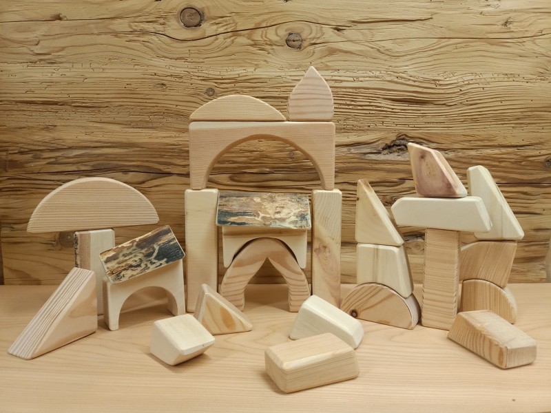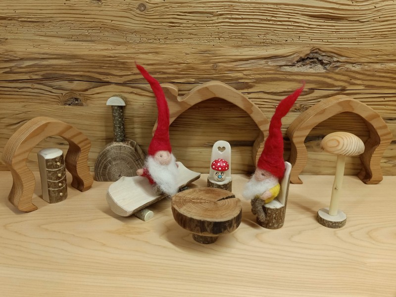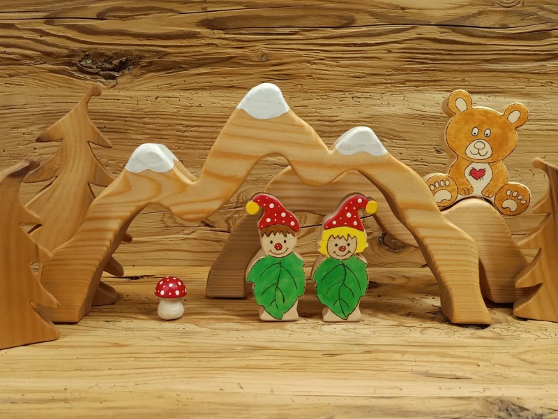 Ich nütze sorgfältig ausgewählte Holzarten wie Zirbenholz, Lärche, Haselnussholz, Linde, Kirsche, Birke und Eiche aus den verzauberten Wäldern Südtirols. Das Herzstück aller verwendeten Hölzer ist das Zirbenholz. Dank seiner natürlichen Duftstoffe verströmt die Spielfigur einen angenehmen und beruhigenden Zauberduft, der sich heilend auf Körper und Seele auswirkt. Das Zirbenholz hat eine positive Wirkung auf das Wohlbefinden und schenkt Ruhe und Geborgenheit.